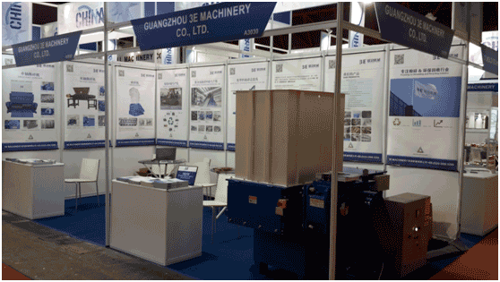 乐动手机注册参加了2014英国废弃物处理及资源回收利用展,展出了单轴撕碎机!