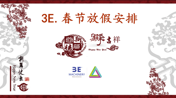 3E机械提前祝大家新春愉快!现将2019年春节放假安排通知及365咨询在线公布如下。