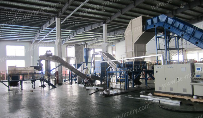 3E机械万吨级日杂料破碎清洗线——可处理的物料:综合废旧日杂塑料;流程:包含了初碎,除铁,二级破碎,清洗,脱水;特点:产量高,能耗低,集中化处理。