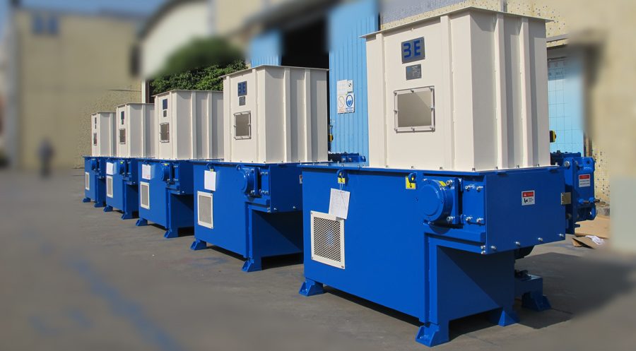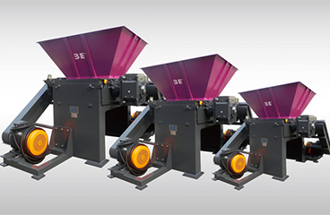 3E机械SWTF双单轴系列撕碎机,国家专利产品,欧盟CE认证,双薄膜刀辊结构,中速、高效、低噪音。针对不同物料可选用不同刀辊。