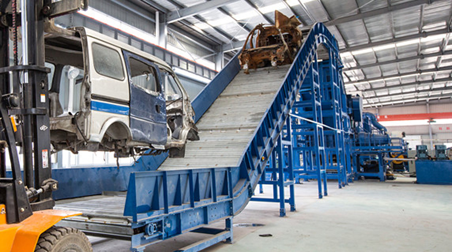 中山汽车拆解破碎回收线,针对废旧汽车外壳进行破碎处理的设备,便于回炉再生循环利用,成功验收。