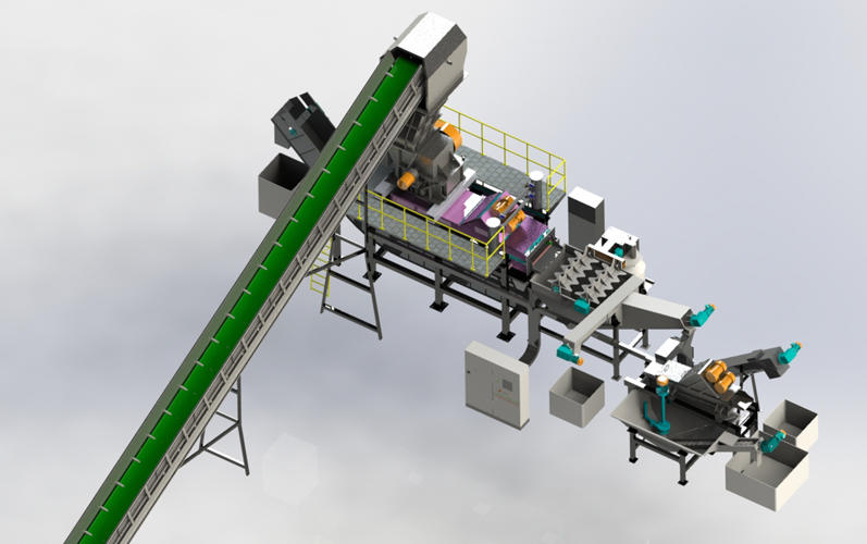 3E机械废旧冰箱回收处理生产线,针对大尺寸冰箱及冰柜的破碎回收,设计独特并获得国家实用新型专利(ZL201720006623.9)