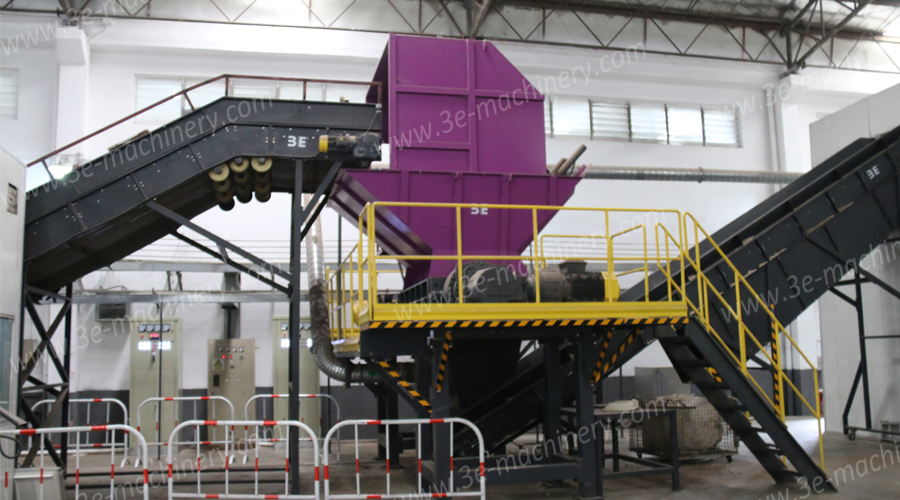 3E机械再生铝撕碎机,采用西门子编程控制系统,设有启动、停止、反转及超载自动反转控制功能,操作简单、维护方便。撕碎物料还可通过分拣系统,把金属和非金属分离开,另外还设计有除尘装置。