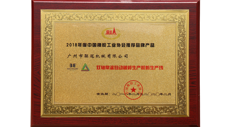 3E机械的双轴常温自动破碎生产胶粉生产线荣获了“2018中国橡胶协会推荐品牌产品”,这个来自行业与同行的高标准肯定,也使3E机机械努力提升自我产品品质更优化。