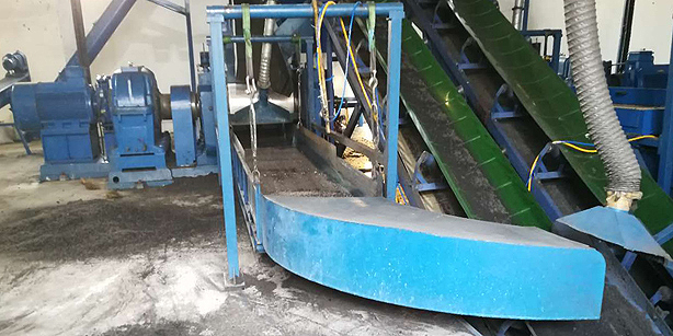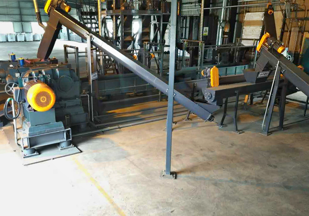 工艺1:双轴撕碎机(出料50X50mm胶块)+沟光辊破胶机;