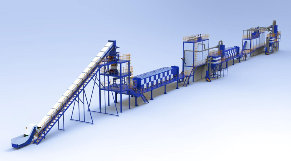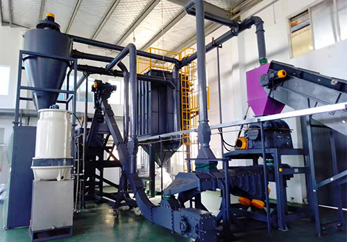 4、采用独特的精细破碎机,可充分剥离极片上的黑粉并让铜箔、铝箔成粒,并且有利于铜、铝箔分选;