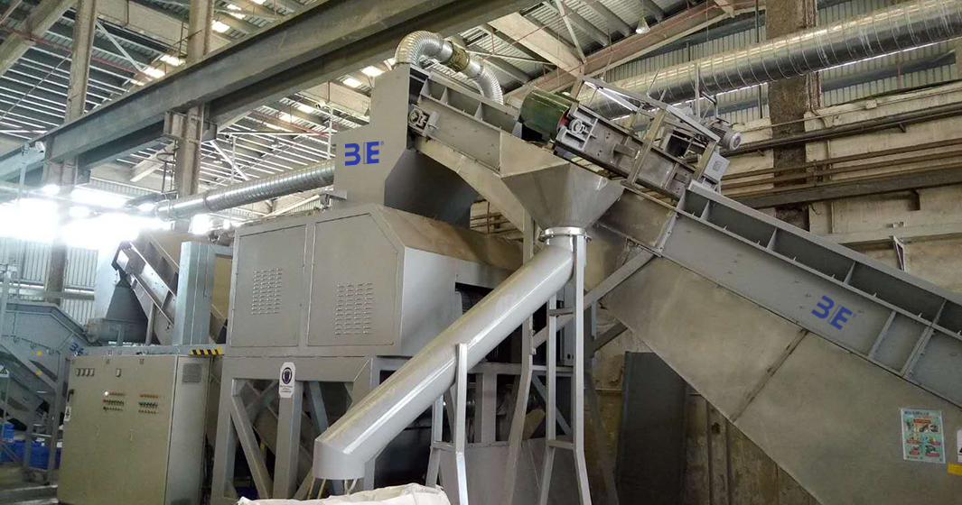 涡流散料机废旧电线电缆经过破碎机破碎后得到的物料颗粒,事先通过气流 分选出粗铜,其余物料送入此机中进一步摩擦、搓揉,铜与铜表 层的塑胶分离彻底,并细化塑料及使细铜丝成粒,以利于后序的 分选。此设备相对于现有的破碎机能耗更低。 |